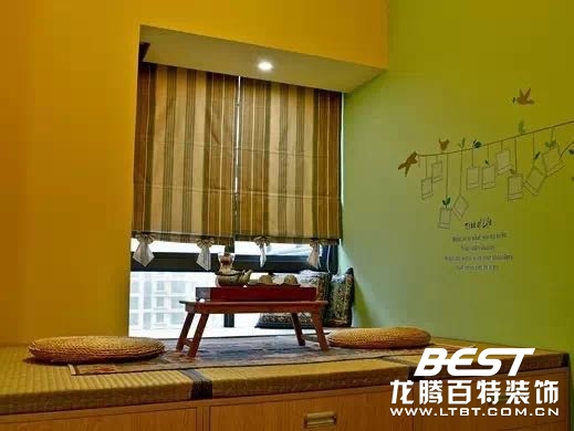 簡單的地臺或榻榻米,一張小木桌,幾個軟靠墊,外加布簾和茶具。暖色調(diào)的墻壁,滿滿溫馨感。方便移動的小桌子,便于清潔與打掃。日式榻榻米的特點在于舒適輕松。泡上一壺煎茶,擺上和果子和抹茶芝士小甜點,便可以和友人盤腿而坐談天說地。